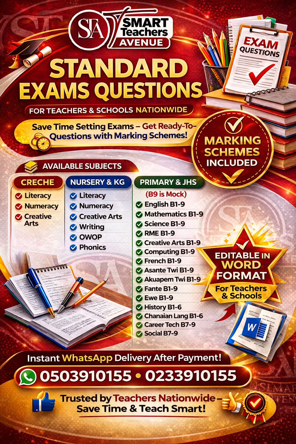 In line with this, Smart Teachers Avenue has completed a full set of lesson plans and schemes of work, meticulously designed and editable in Word format for all levels from KG to JHS. These resources are crafted to help teachers deliver engaging and effective lessons, support student comprehension, and enhance overall classroom performance.